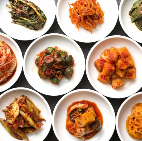 李朝園のキムチは、本場韓国仕込みの味と技に果物や甲殻類などで旨みを引き出し、日本で馴染み深い<かつお節><昆布だし>を組み合わせることでまろやかで食べやすい、美味しいキムチができあがりました。皆様にいつでも美味しいキムチを伝えたい想いから食べ放題でご提供いたしています。